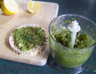 I substituted the almonds since it's the only nut I'm allowed. It was chunky but really really tasty. I had it spread on a couple of rice cakes for a mid afternoon snack.